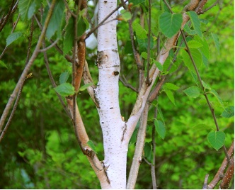 若木のうちから樹皮の色が白く美しいシラカバの木で、樹木が並ぶ中で混植しても目立ちます。ナチュラルガーデンの中に植えるなど、自然なイメージの景観によくマッチします。比較的成長が遅いので一般家庭に向いています。