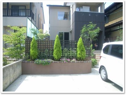 元々植えてあったゴールドクレストを剪定し樹形も整い木が元気になった木がします。 |