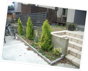 駐車場にあった花壇スペースを、レンガを積んで高さを出したいとご相談を受けました。