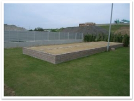 ここは元々浄化槽スラブがあり、利用価値のないスペースでした。そのデットスペースを有効活用して、広さ十分な花壇を設置。 レンガは東洋工業「ベイブリック・スクエアウォール」を使用。 飛び石に東洋工業「スーパーテラTRM」を並べました。 現在この花壇には、草花だけでなく菜園スペースとしても大活躍しています。 |