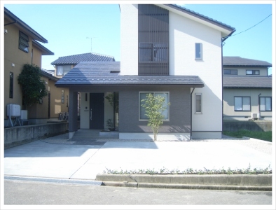 駐車スペースを十分に確保しながら他とは違うエクステリアを実現させました。 |
