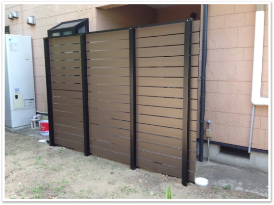 板材は木調の樹脂製、柱もアルミにしたので、