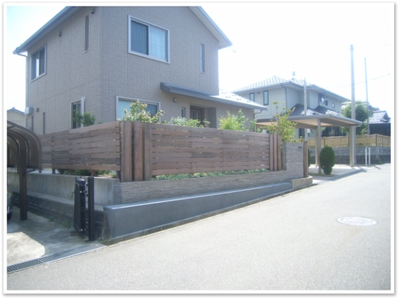 プライベート空間はウッドフェンスで囲い、