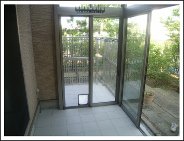 ネコちゃんが自由に出入りできる小窓をつけました。