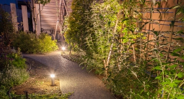 夜でも安心してお庭で楽しめるよう、安全性や機能性も大切に。光のグラデーションで心癒されるお庭です。